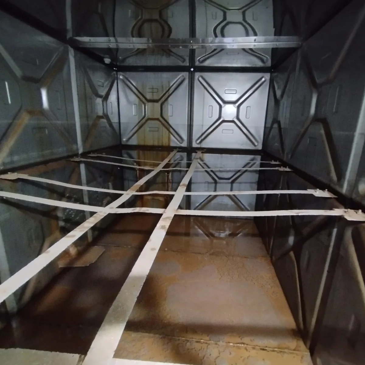 Eskimiş modüler su deposunun komple temizlik ve iç yüzey yenileme işlemi.